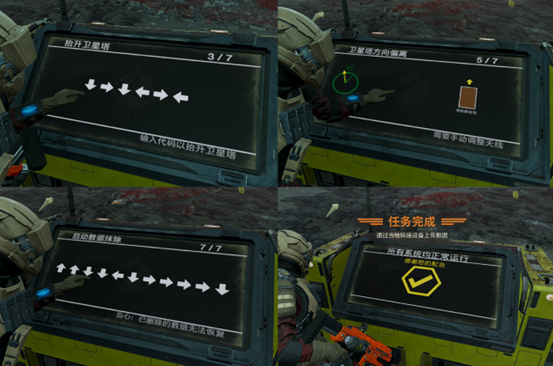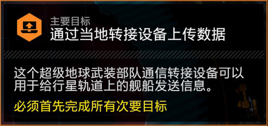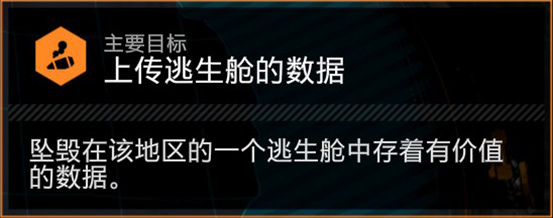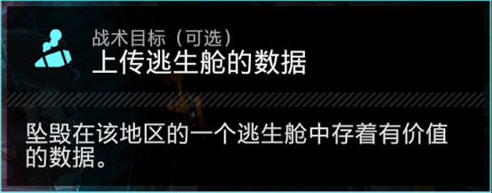 特点:它似乎只存在于N2(在N2之后,它成为一条支线任务)。在逃生舱附近,战备栏中会出现“上传数据”的选项(←→↑↑),然后在一定范围内等待,直到进度结束,如果超出范围,进度将被重置,并且在倒计时结束之前进度不会返回该区域。