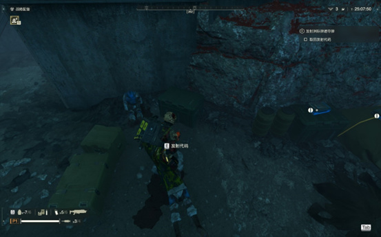 到达二级目标任务附近时,战备栏会弹出“地震探测器”选项(↓↓ →↓ ↓),呼叫后会落到固定位置,在其终端操作完成。