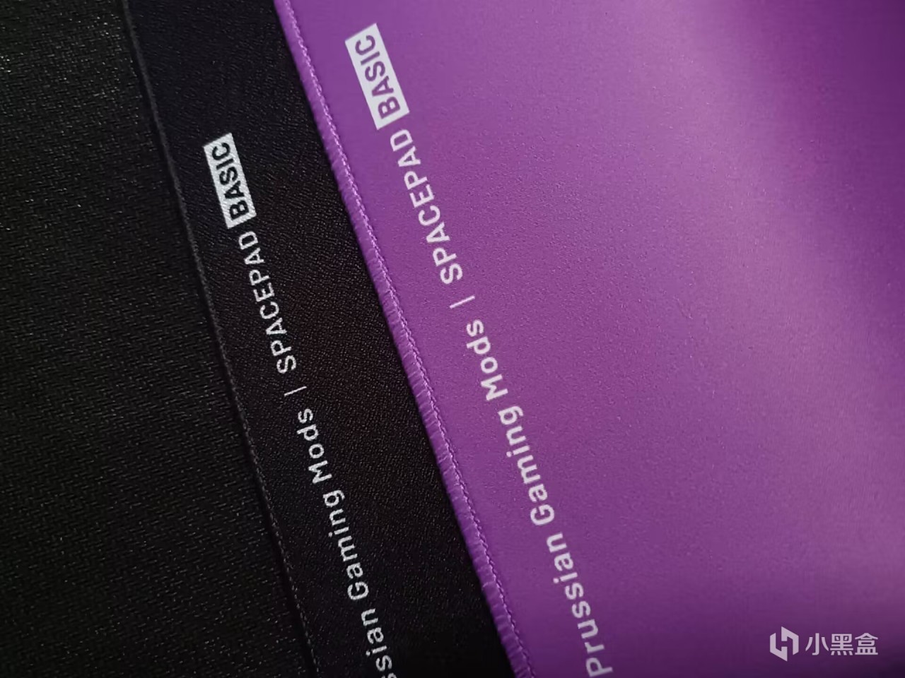 我拿到了两个纯色垫子,一个紫色细面和一个黑色粗面,右上方有对应的文字,这个系列的后缀“BASIC”表示做好电子竞技基础版鼠标垫,这两个垫子的尺寸都是450*400mm,这是标准的FPS垫子尺寸,适合手臂流和手腕流,大幅度拉枪也没问题。打开后,它有一点味道。